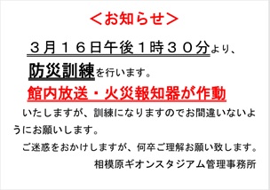 ●3/16(月)13:30~14:10防災・消防訓練